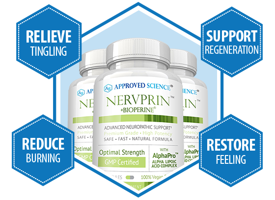 Approved Science® Nervprin™ is a scientifically-formulated neuropathy relief supplement, designed to alleviate pain, boost nerve function, and soothe stinging and numbness. By addressing nutritional deficiencies and supporting cell recovery, it goes beyond standard symptom relief to help regenerate nerves and promote overall nerve health.