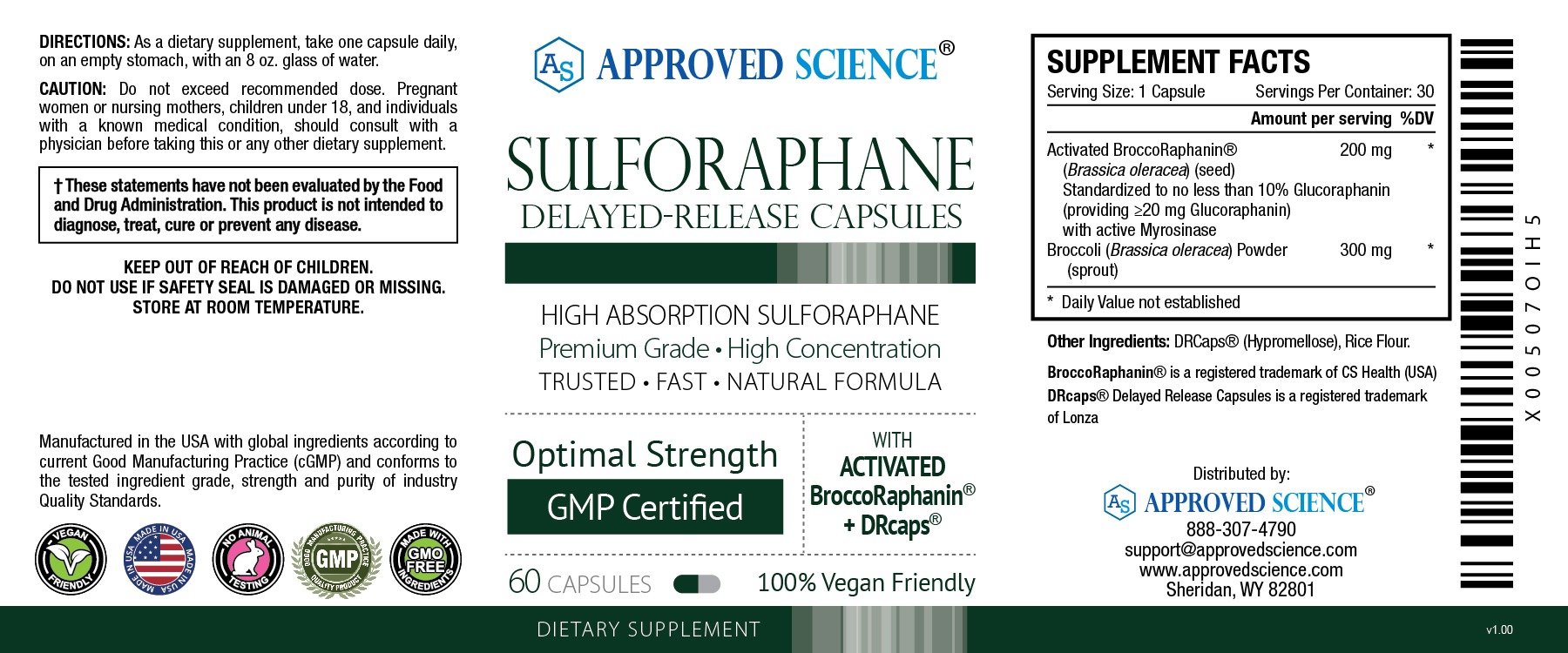 APPROVED SCIENCE® SULFORAPHANE LABEL AND DIRECTIONS