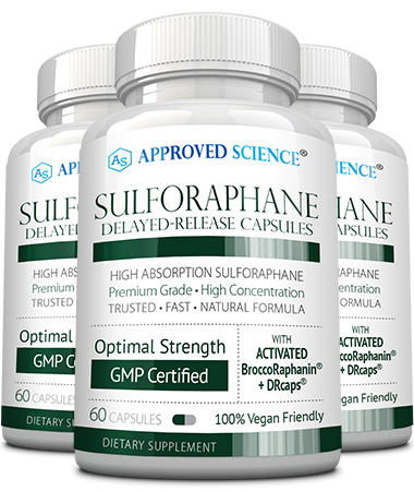 In order to be efficiently absorbed, the Sulforaphane must be created inside the small intestine. Approved Science Sulforaphane uses DRcaps (delayed-release capsules) that are acid-resistant and protect the Glucoraphanin and Myrosinase from stomach acid.